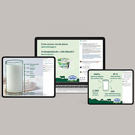 Mila è sinonimo di latte fresco di montagna e prodotti caseari dell'Alto Adige. Con campagne di prodotto e post creativi sui social media, la fan community è stata incoraggiata a mettere like, a cliccare e a interagire.